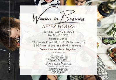 Join us for an inspiring evening of connection, collaboration, and celebration at our Women in Business: After Hours event, graciously hosted by the beautiful Folktale Venue.